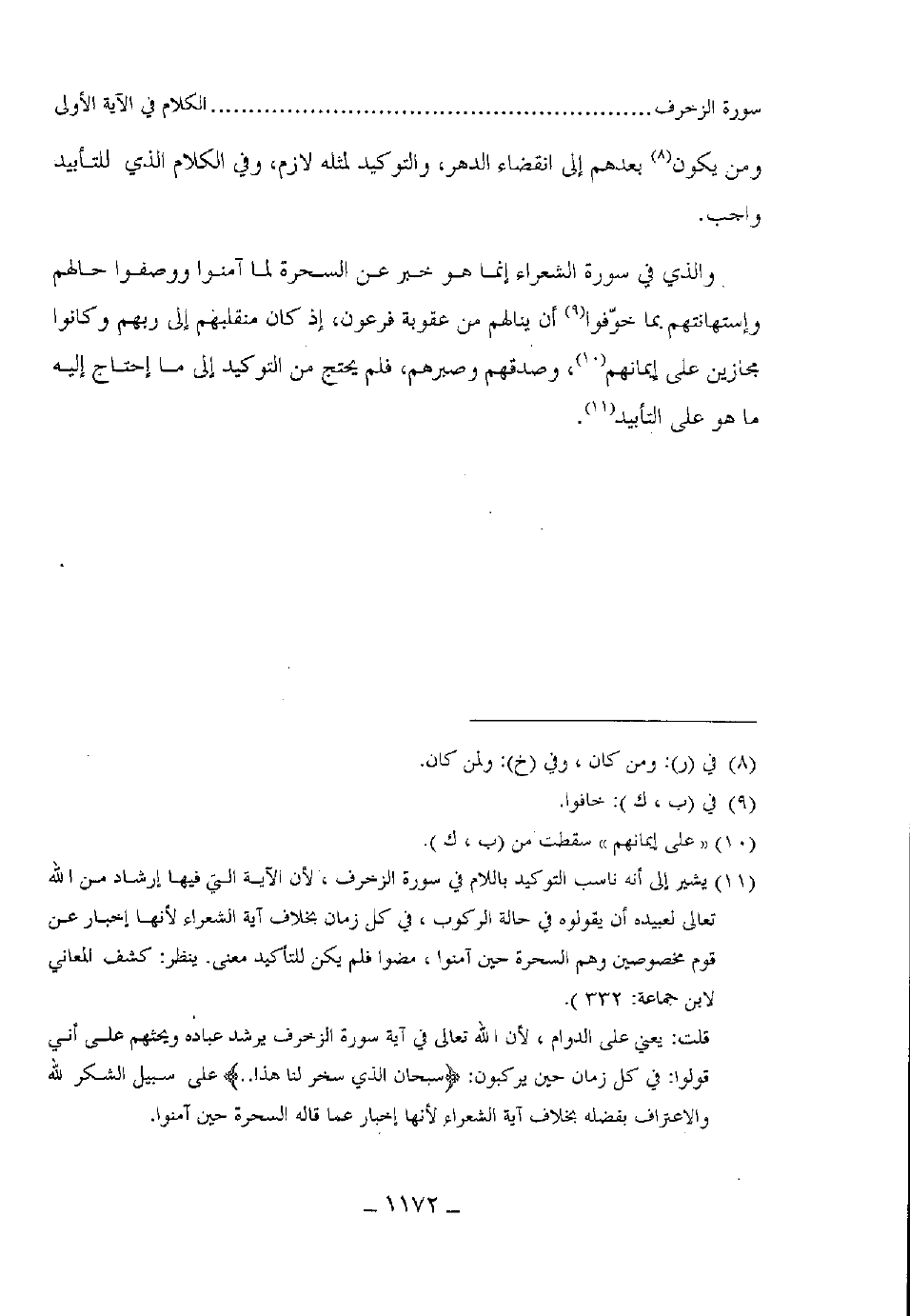 والذي في سورة الشعراء إنما هو خبر عن السحرة لما آمنوا ووصفوا حالهم واستهانتهم بما خوّفوا أن ينالهم من عقوبة فرعون، إذ كان منقلبهم إلى ربهم وكانوا مجازين على إيمانهم وصدقهم وصبرهم، فلم يحتج من التوكيد إلى ما احتاج إليه ما هو على التأييد.