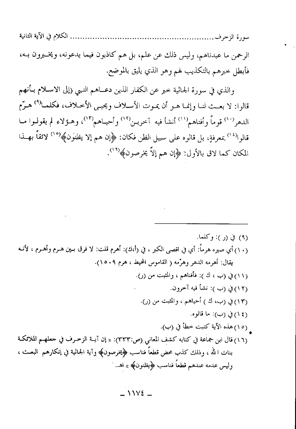 والذي في سورة الجاثية خبر عن الكفار الذين دعاهم النبي - صلى الله عليه وسلم - إلى الاسلام بأنهم قالوا: لا بعث لنا وإنما هو أن تموت الأسلاف وتحيى الأخلاف، فكلما هدم الدهر قوما فأفناهم أنشأ فيه آخرين وأحياهم، وهؤلاء لم يقولوا ما قالوا بمعرفة بل قالوه على سبيل الظن فكان، (إن هم إلا يظنون) لائقأ بهذا المكان كما لاق بالأول: ْ (إن هم إلاّ يخرصون) .