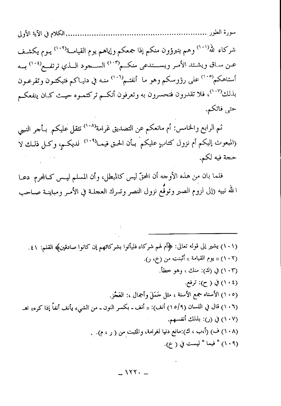 فلما بان من هذه الأوجه أن المحقّ ليس كالمبطل وأن المسلم ليس كالمجرم، دعا الله نبيه - صلى الله عليه وسلم - إلى لزوم الصبر وتوفع نزول النصر وترك العجلة في الأمر ومباينة صاحب