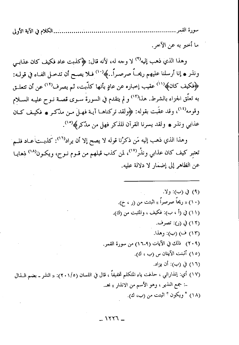 فلا يصح أن تدخل الفاء في قوله: (فكيف كان) عقيب إخباره عن عاد بأنها كذّبت، ثم يصرف عن أن تتعلق به تعلق الجزاء بالشرط. هذا ولم يتقدم في السورة سوى قصة نوح عليه السلام وقومه، وقد عقبت بقوله: (وَلَقَدْ تَرَكْنَاهَا آيَةً فَهَلْ مِنْ مُدَّكِرٍ (15) فَكَيْفَ كَانَ عَذَابِي وَنُذُرِ (16) وَلَقَدْ يَسَّرْنَا الْقُرْآنَ لِلذِّكْرِ فَهَلْ مِنْ مُدَّكِرٍ (17) .