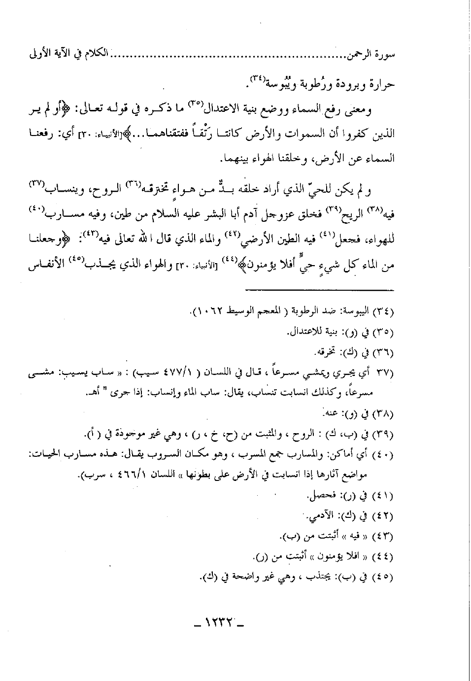 فيه الريح فخلق عز وجل آدم أبا البشر عليه السلام من طين، وفيه مسارب للهواء، فجعل فيه الطين الأرضي والماء الذي قال الله تعالى فيه (وَجَعَلْنَا مِنَ الْمَاءِ كُلَّ شَيْءٍ حَيٍّ أَفَلَا يُؤْمِنُونَ (30)