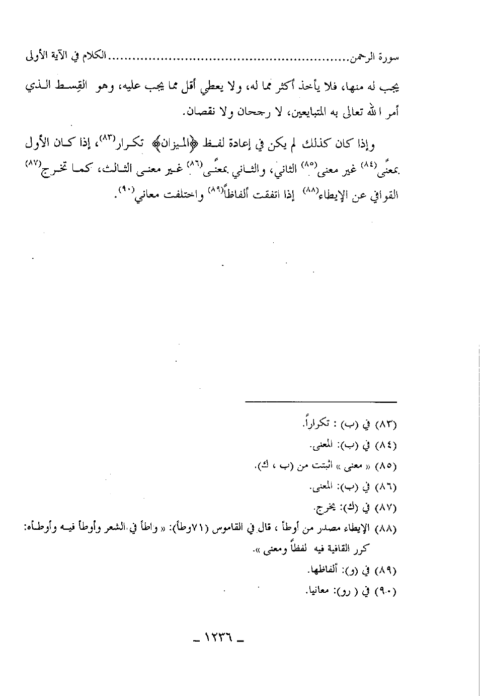 وإذا كان كذلك لم يكن في إعادة لفظ (الميزان) تكرار، إذا كان الأول
