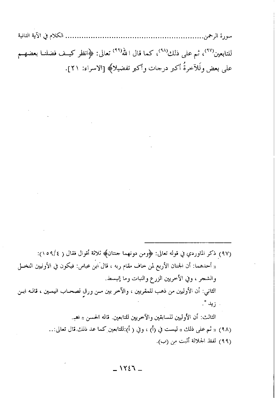 للتابعين ثم على ذلك، كما قال الله تعالى: (انْظُرْ كَيْفَ فَضَّلْنَا بَعْضَهُمْ عَلَى بَعْضٍ وَلَلْآخِرَةُ أَكْبَرُ دَرَجَاتٍ وَأَكْبَرُ تَفْضِيلًا (21) .