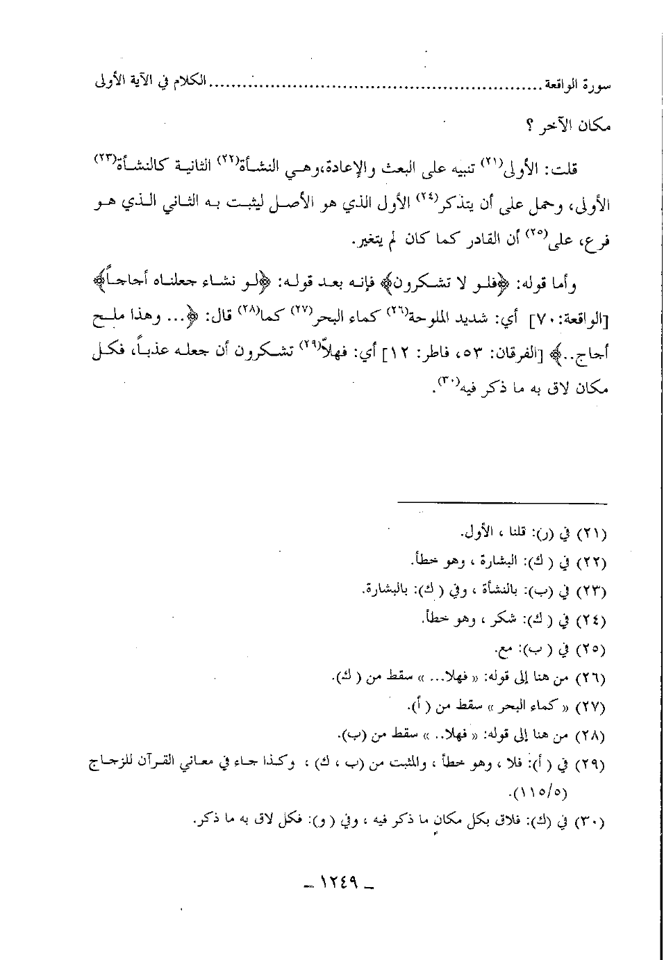 وأما قوله: (فلولا تشكرون) فإنه بعد قوله: (لو نشاء جعلناه أجاجاً)