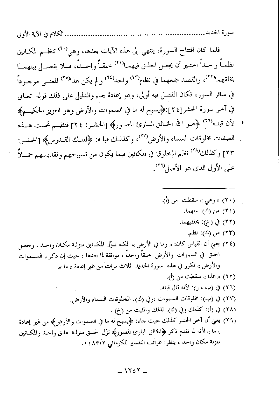 فلما كان افتتاح السورة، ينتهي إلى هذه الآيات بعدها، وهي تنظم المكانين نظما واحدا اختير أن يجعل الخلق فيهما خلقا واحدا، فلا يفصل بينهما بخلقهما، والقصد جمعهما في نظام واحد ولم يكن هذا المعنى موجودا في سائر السور، فكان الفصل فيه أولى، وهو إعادة "ما" والدليل على ذلك قوله تعالى في آخر سورة الحشر (يسبح له ما في السموات والأرض وهو العزيز الحكيم) لأن قبله (هو الله الخالق البارىء المصور) ، فنظم تحت هذه الصفات مخلوقات السماء والأرض، وكذلك قبله: (الملك القدوس) ، وكذلك نظم المخلوق في المكانين فيما يكون من تسبيحهم وتقديسهم على الأول الذي هو الأصل.