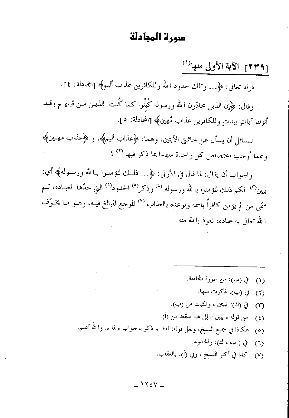 وقال: (إِنَّ الَّذِينَ يُحَادُّونَ اللَّهَ وَرَسُولَهُ كُبِتُوا كَمَا كُبِتَ الَّذِينَ مِنْ قَبْلِهِمْ وَقَدْ أَنْزَلْنَا آيَاتٍ بَيِّنَاتٍ وَلِلْكَافِرِينَ عَذَابٌ مُهِينٌ (5) .