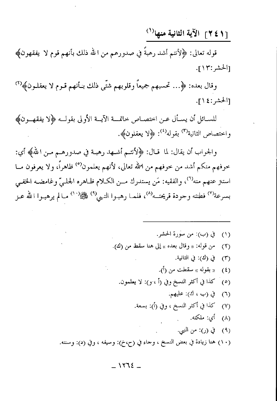 قوله تعالى: (لَأَنْتُمْ أَشَدُّ رَهْبَةً فِي صُدُورِهِمْ مِنَ اللَّهِ ذَلِكَ بِأَنَّهُمْ قَوْمٌ لَا يَفْقَهُونَ (13) .