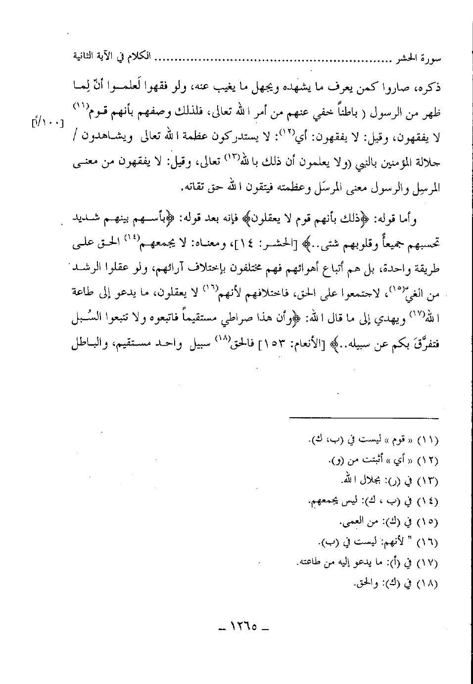 وأما قوله: (ذلك بأنهم قوم لا يعقلون) فإنه بعد قوله: (بأسهم بينهم شديد تحسبهم جميعا وقلوبهم شتى..) ، ومعناه: لا يجمعهم الحق على طريقة واحدة، بل هم أتباع أهوائهم فهم مختلفون باختلاف آرائهم، ولو عقلوا الرشد من الغيّ، لاجتمعوا على الحق فاختلافهم لأنهم لا يعقلون ما يدعو إلى طاعة الله ويهدي إلى ما قال الله: (وَأَنَّ هَذَا صِرَاطِي مُسْتَقِيمًا فَاتَّبِعُوهُ وَلَا تَتَّبِعُوا السُّبُلَ فَتَفَرَّقَ بِكُمْ عَنْ سَبِيلِهِ..) ، فالحق سبيل واحد مستقيم، والباطل