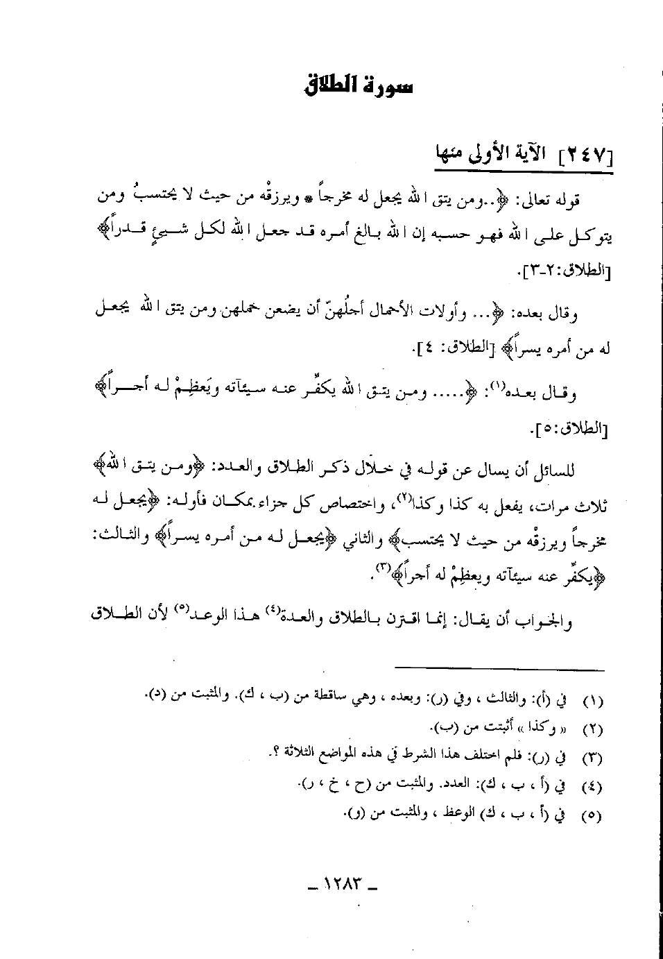 للسائل أن يسأل عن قوله في خلال ذكر الطلاق والعدد: (..... وَمَنْ يَتَّقِ اللَّهَ) ثلات مرات، يفعل به كذا واختصاص كل جزاء بمكان فأوله: (يَجْعَلْ لَهُ مَخْرَجًا (2) وَيَرْزُقْهُ مِنْ حَيْثُ لَا يَحْتَسِبُ) والثاني (يَجْعَلْ لَهُ مِنْ أَمْرِهِ يُسْرًا) والثالث: (يُكَفِّرْ عَنْهُ سَيِّئَاتِهِ وَيُعْظِمْ لَهُ أَجْرً) .