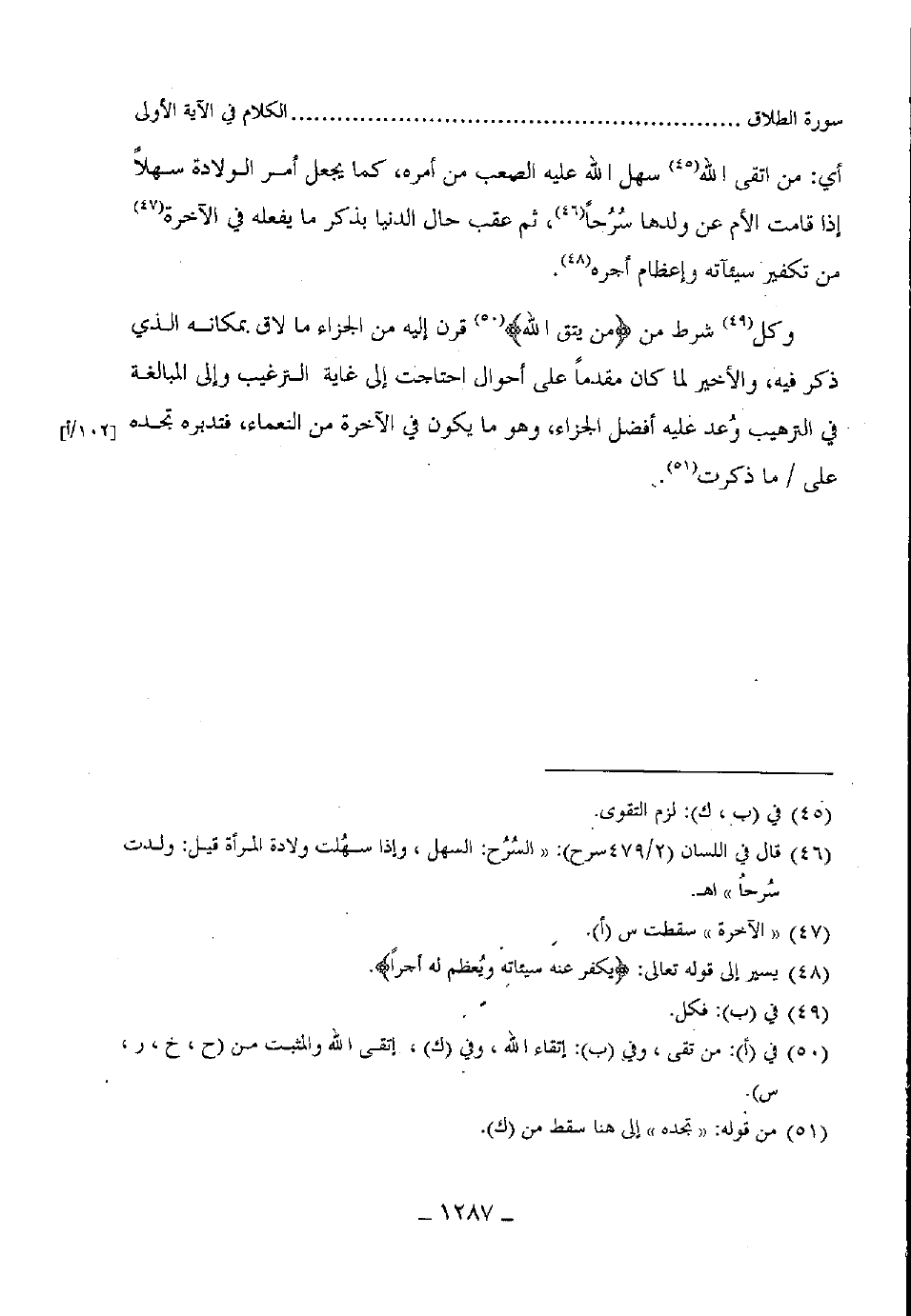 فكل شرط من (تُقى الله) قرن إليه من الجزاء ما لاق. بمكانه الذي ذكر فيه، والأخير لما كان مقدما على أحوال احتاجت إلى غاية الترغيب وإلى المبالغة