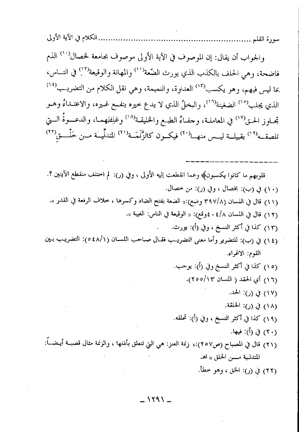 الجواب أن يقال: إن الموصوف في الآية الأولى موصوف بجامعة لخصال الذم فاضحة، وهي الحلف بالكذب الذي يورث الضعة والمهانة والوقيعة في الناس،. مما ليس فيهم، وهو يكسب العداوة، والنميمة، وهي نقل الكلام للتعريف الذي يجلب الضغينة والبخل الذي لا يدع خيره ينفع غيره، والاعتداءُ وهو تجاوز الحق في المعاملة، وجفاءُ الطبع والخليقة وغلِظهما، والدعوةُ التى تلصقه بقبيلة ليس منها فيكون كالزنَمَة المتدلِّية من الجدى.