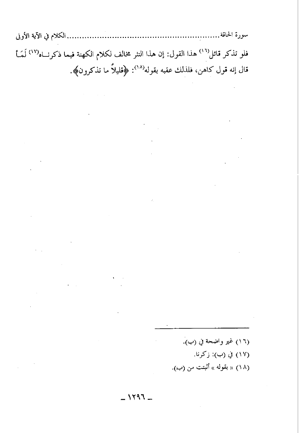 فلو ئذكر قائل هذا القول: أن هذا النثر مخالف لكلام الكهنة فيما ذكرنا لَمَا قال إنه قول كاهن، فلذلك عقبه بقوله: (قليلا ما تذكرون) .