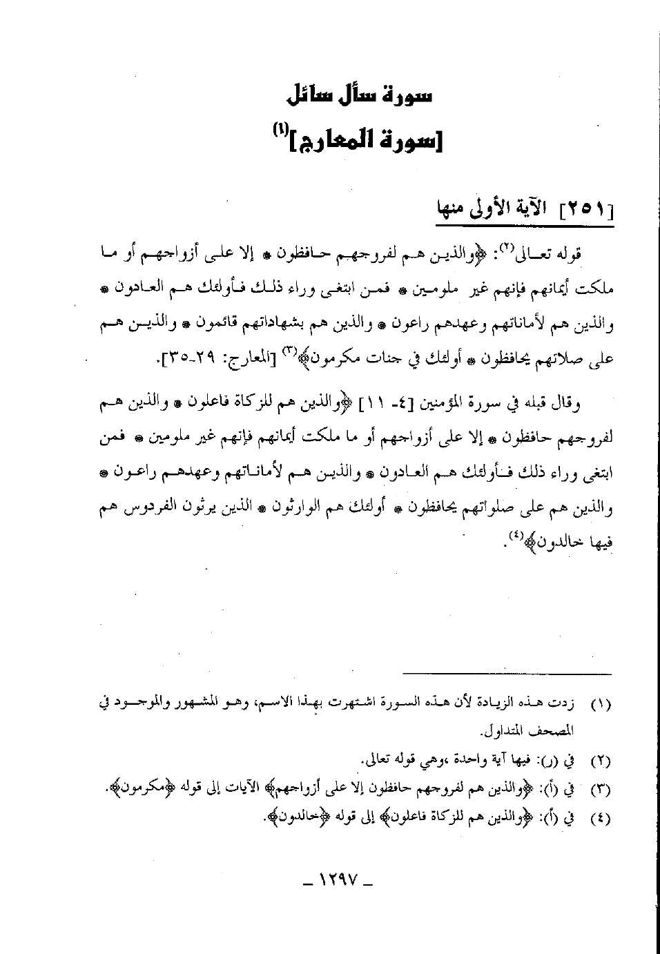 قوله تعالى: (وَالَّذِينَ هُمْ لِفُرُوجِهِمْ حَافِظُونَ (29) إِلَّا عَلَى أَزْوَاجِهِمْ أَوْ مَا مَلَكَتْ أَيْمَانُهُمْ فَإِنَّهُمْ غَيْرُ مَلُومِينَ (30) فَمَنِ ابْتَغَى وَرَاءَ ذَلِكَ فَأُولَئِكَ هُمُ الْعَادُونَ (31) وَالَّذِينَ هُمْ لِأَمَانَاتِهِمْ وَعَهْدِهِمْ رَاعُونَ (32) وَالَّذِينَ هُمْ بِشَهَادَاتِهِمْ قَائِمُونَ (33) وَالَّذِينَ هُمْ عَلَى صَلَاتِهِمْ يُحَافِظُونَ (34) أُولَئِكَ فِي جَنَّاتٍ مُكْرَمُونَ (35)