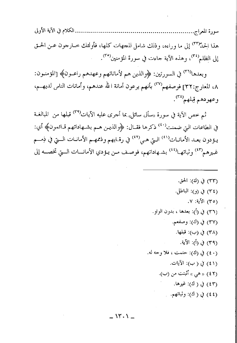 ثم خص الآية في سورة "سأل سائل بما أجرى عليه الآيات قبلها من المبالغة في الطاعات التي تضمنت ذكرها فقال: (والدين هم بشهاداتهم قائمون) أي: يؤدون بعد الأمانات التي هي في رقابهم وذممهم الأمانات التي فِى ذِمم غيرهم وثباتها بشهاداتهم، فوصف من يؤدي الأمانات التي تخصه إلى
