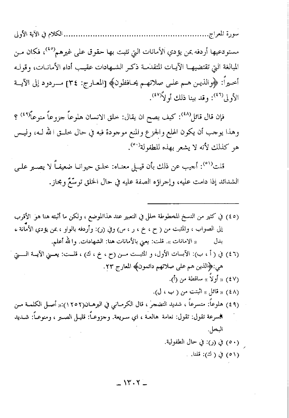 فإن قال قائل: كيف يصح أن يقال: خلق الإنسان هلوعا جزوعا منوعا؟ وهذا يوجب أن يكون الهلع والجزع والمنع موجودة فيه في حال خلق الله له، وليس هو كذلك لأنه لا يشعر بهذه للطفولة (ِ) .