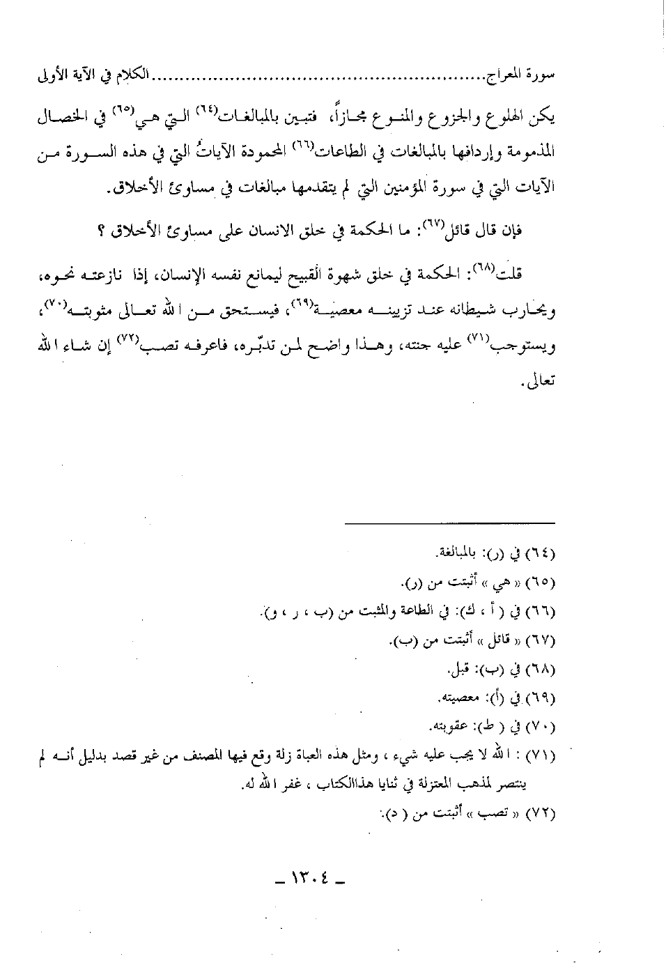 لم يكن الهلوع والجزوع والمنوع مجازا، فتبين بالمبالغات التي هي في الخصال المذمومة وإردافها بالمبالغات في الطاعات المحمودة الآيات التي في هذه السورة من الآيات التي في سورةالمؤمنين التي يتقدمها مبالغات في مساوئ الأخلاق.