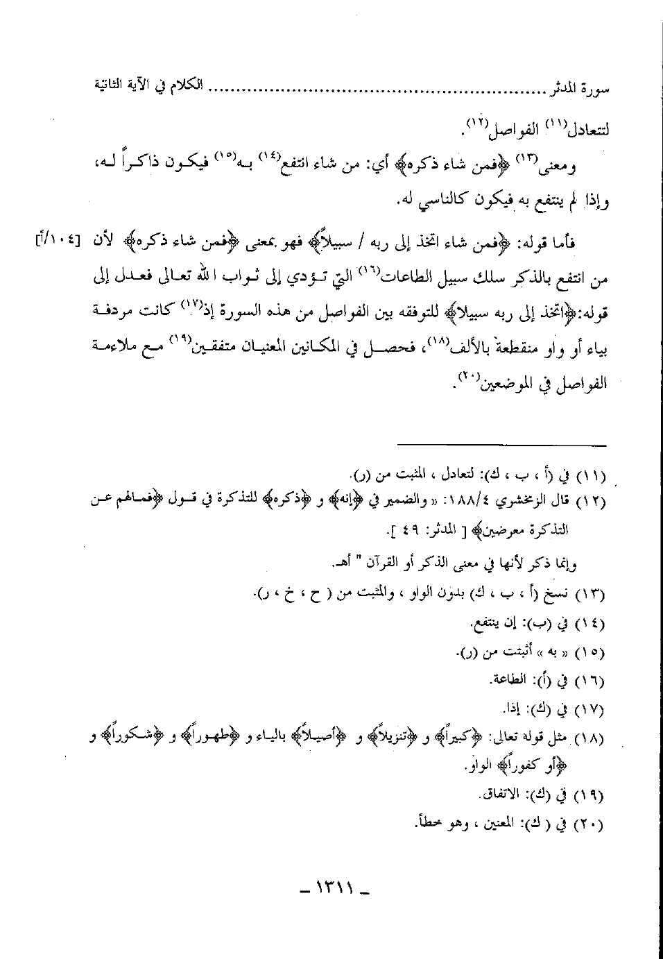 فأما قوله: (فمن شاء اتخذ إلى ربه سبيلا) فهو بمعنى (فمن شاء ذكره لأن