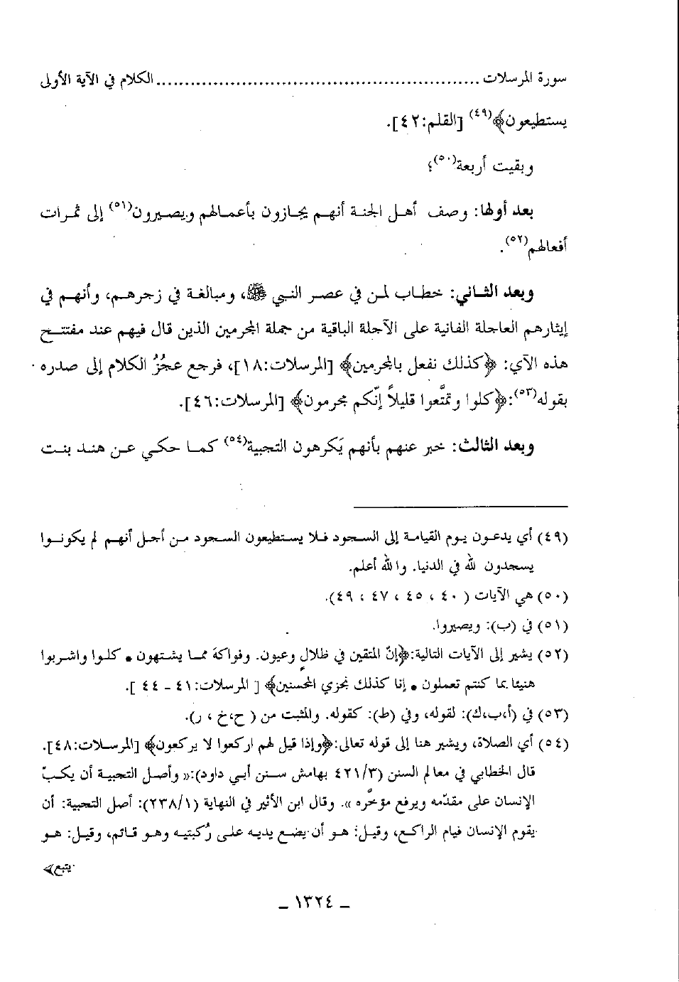 وبعد الثاني: خطاب لمن في عصر النبي - صلى الله عليه وسلم - ومبالغة في زجرهم، وأنهم في إيثارعم العاجلة الفانية على الآجلة الباقية من جملة المجرمين الذين قال فيهم عند مفتتح هذه الآي: كذلك نفعل بالمجرمين) ، فرجع عجُزُ الكلام إلى صدره. بقوله: (كلوا وتمتعوا قليلاً إنكم مجرمون) .