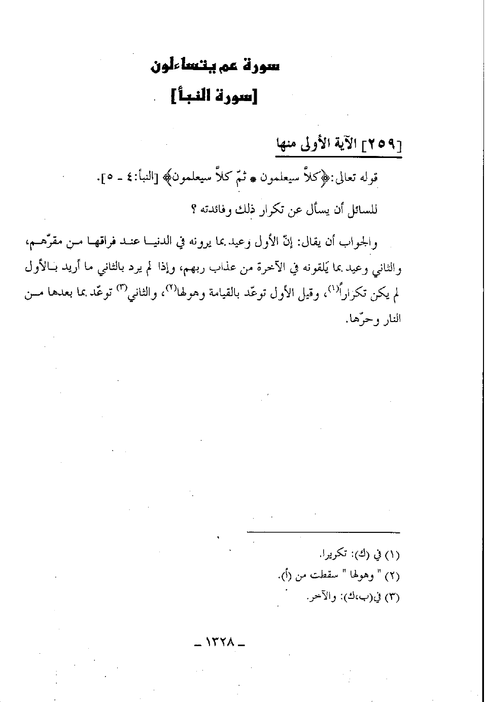 قوله تعالى: (كلا سيعلمون ثمّ كلا سيعلمون) .
