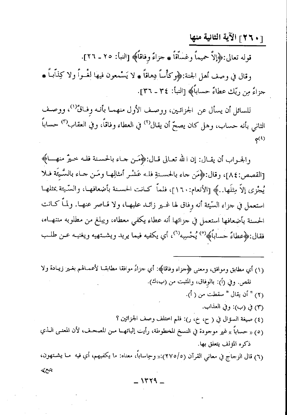 للسائل أن يسأل عن الجزائين، ووصف الأول منهما بالوفاق، ووصف الثاني بأنه حساب، وهل كان يصح أن يقال في العطاء وفاقا، وفي العقاب حسابا؟