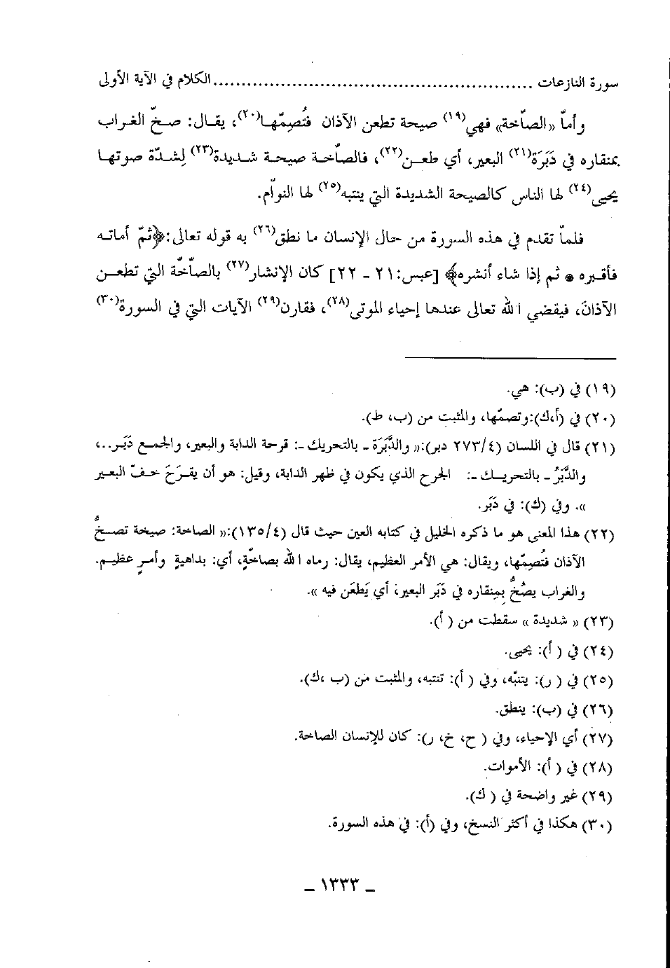 وأماّ الصاّخة فهي صيحة تطعن الآذان فتُصِمّها، يقال: صخّ الغراب، بمنقاره في دبر البعير، أي طعن، فالصاّخة صيحة شديدة لِشدّة صوتها تحى لها الناس كالصيحة الشديدة التى تنبه لها النوّام.