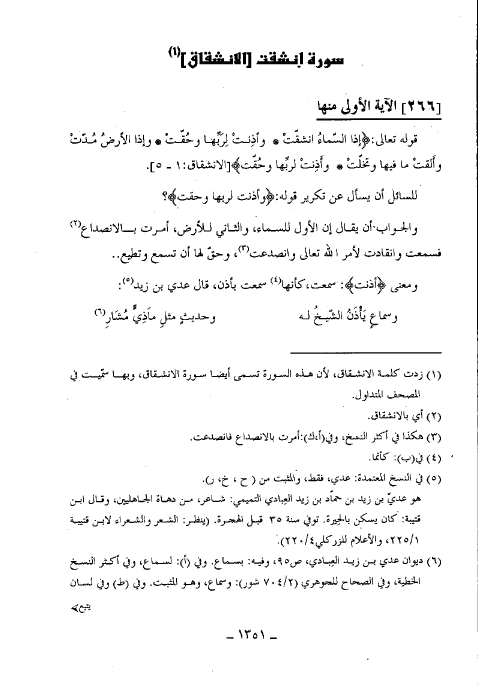 قوله تعالى: (إِذَا السَّمَاءُ انْشَقَّتْ (1) وَأَذِنَتْ لِرَبِّهَا وَحُقَّتْ (2) وَإِذَا الْأَرْضُ مُدَّتْ (3) وَأَلْقَتْ مَا فِيهَا وَتَخَلَّتْ (4) وَأَذِنَتْ لِرَبِّهَا وَحُقَّتْ (5)