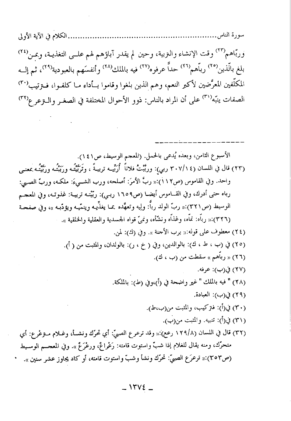 ورباهم وقت الإنشاء والتربية، وحين لم يقدر آباؤهم لهم على التغذية وبمن بلغ بالوالدين حدا عرفوه فيه بالملكة وأنفسهم بالعبودية، ثم إله المكلفين المعرضين لأكبر النعم وهم الذين بلغوا وقاموا بأداء ما كلفوا فترتيب الصفات تنبيه على أن المراد بالناس ذوو الأحوال المختلفة فى الصغر والترعرع