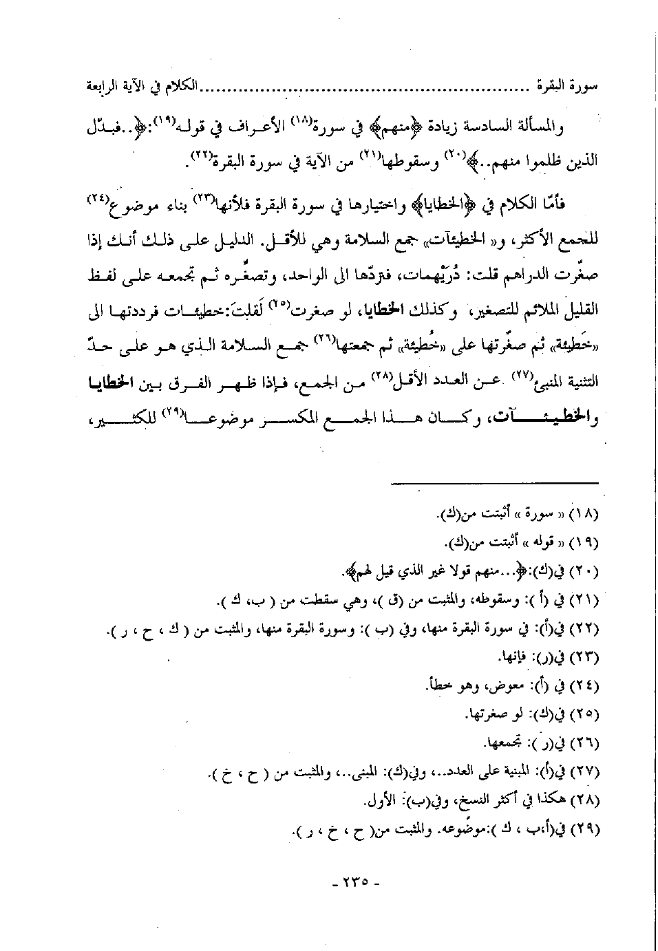 الذي هو على حد التثنية المنبئ عن العدد الأقل من الجمع، فإذا ظهر الفرق بين الخطايا والخطيئات، وكان هذا الجمع المكسر موضوعا للكثير،
