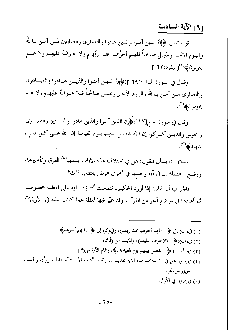 للسائل أن يسأل فيقول: هل في اختلاف هذه الآيات بتقديم الفرق وتأخيرها، ورفع الصائبين في آية ونصبها في أخرى غرض يقتضي ذلك؟