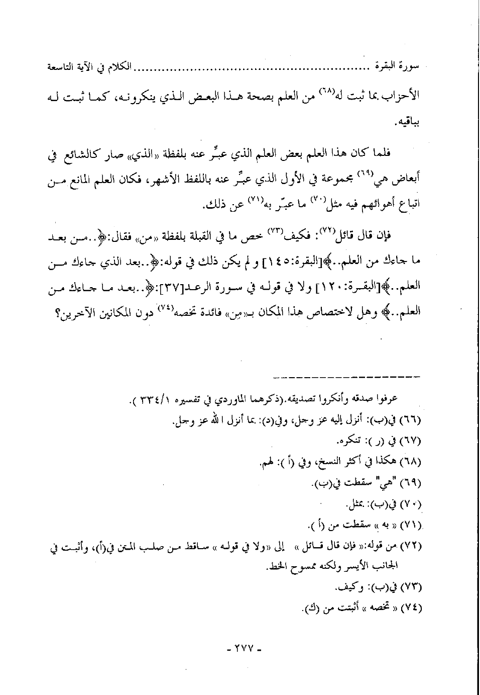 فإن قال قائل: فكيف خص ما في القبلة بلفظة من فقال: (.. من بعد ما جاءك من العلم..) البقرة: 145 ولم يكن ذلك في قوله: (.. بعد الذي جاءك من العلم..) وهل لاختصاص هذا المكان ب من فائدة تخصه دون المكانين الآخرين؟