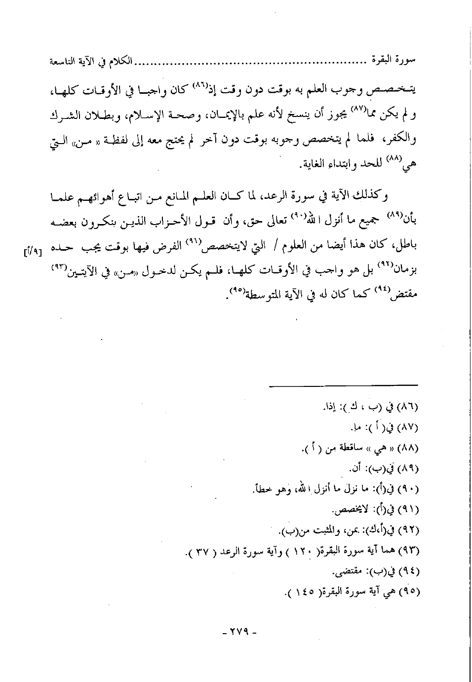 يتخصص وجوب العلم به بوقت دون وقت إذ كان واجبا في الأوقات كلها، ولم يكن مما يجوز أن ينسخ لأنه علم بالإيمان، وصحة الإسلام، وبطلان الشرك والكفر، فلما لم يتخصص وجوبه بوقت دون آخر لم يحتج معه إلى لفظة من التي هي للحد وابتداء الغاية.