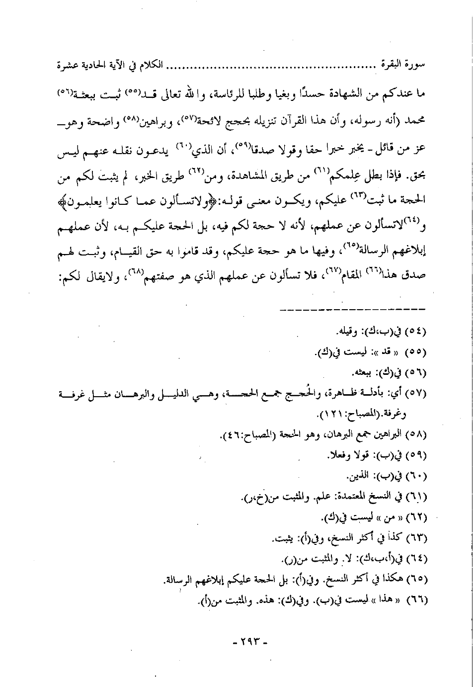 ما عندكم من الشهادة حسدا وبغيا وطلبا للرئاسة، والله تعالى قد ثبت يبعثه محمد أنه رسوله، وأن هذا القرآن تنزيله بحج لائحة، وبراهين واضحة وهو عز من قائل يخبر خبرا حقا وقولا صدقا، أن الذي يدعون نقله عنهم ليس بحق فإذا بطل علمكم من طريق المشاهدة، ومن طريق الخبر، لم يثبت لكم من الحجة ما ثبت عليكم، ويكون معنى قوله: (ولا تسألون عنا كانوا يعملون) ولا تسألون عن عملهم، لأنه لا حجة لكم فيه، بل حجة عليكم، وقد قاموا به حق القيام، وثبت لهم صدق هذا المقام، فلا تسألون عن عملهم الذي هو صفتهم، ولا قال لكم: