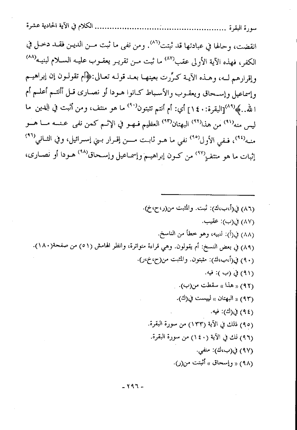انقضت، وحالها في عبادتها قد ثبتت ومن نفى ما ثبت من الدين فقد دخل في الكفر، فهذه الآية الأولى عقب ما ثبت من تقرير يعقوب