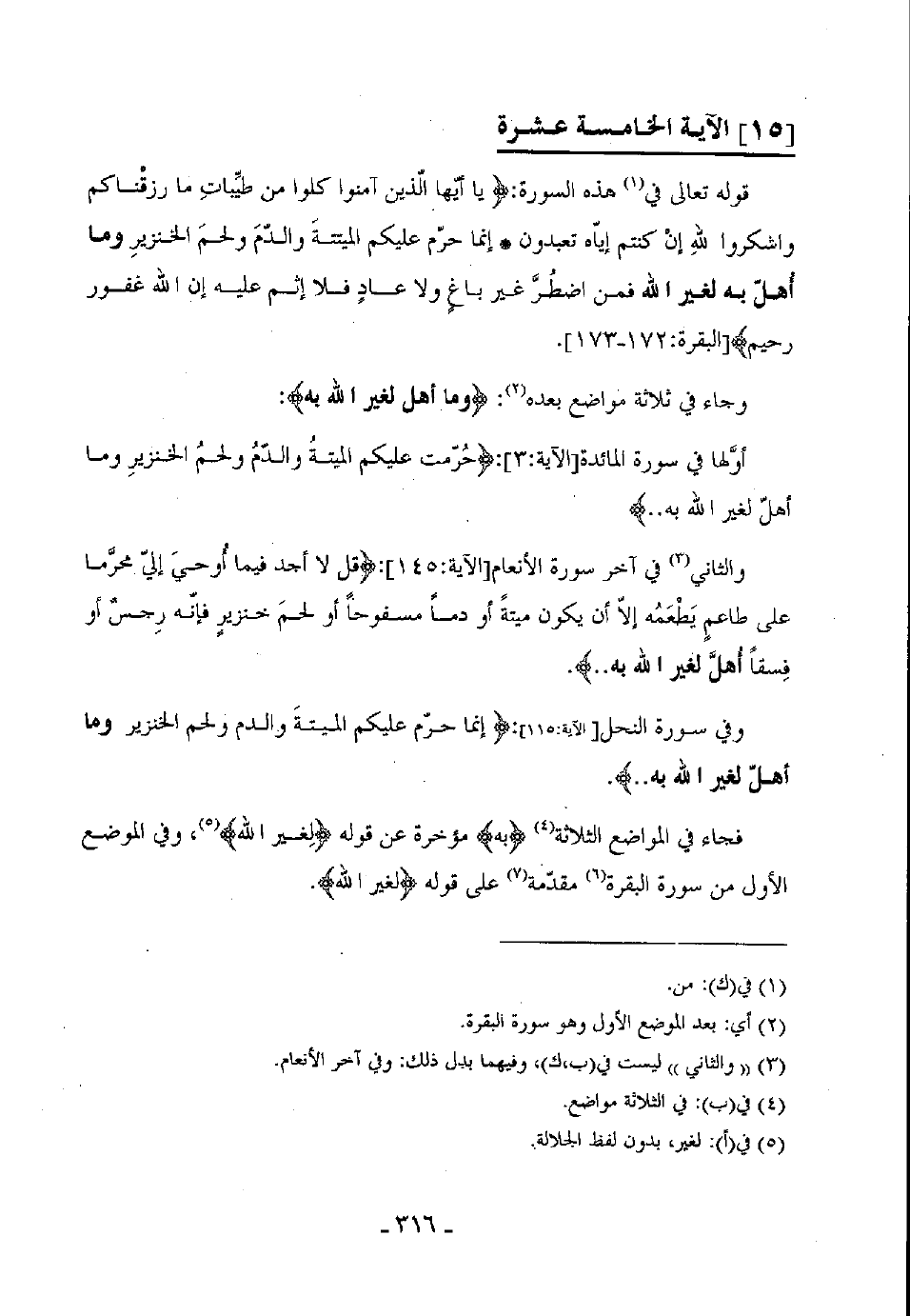 وفي سورة النحل" الآية: 115" (إنما حرم عليكم الميتة والدم ولحم الخنزير وما أهل لغير الله به..) .