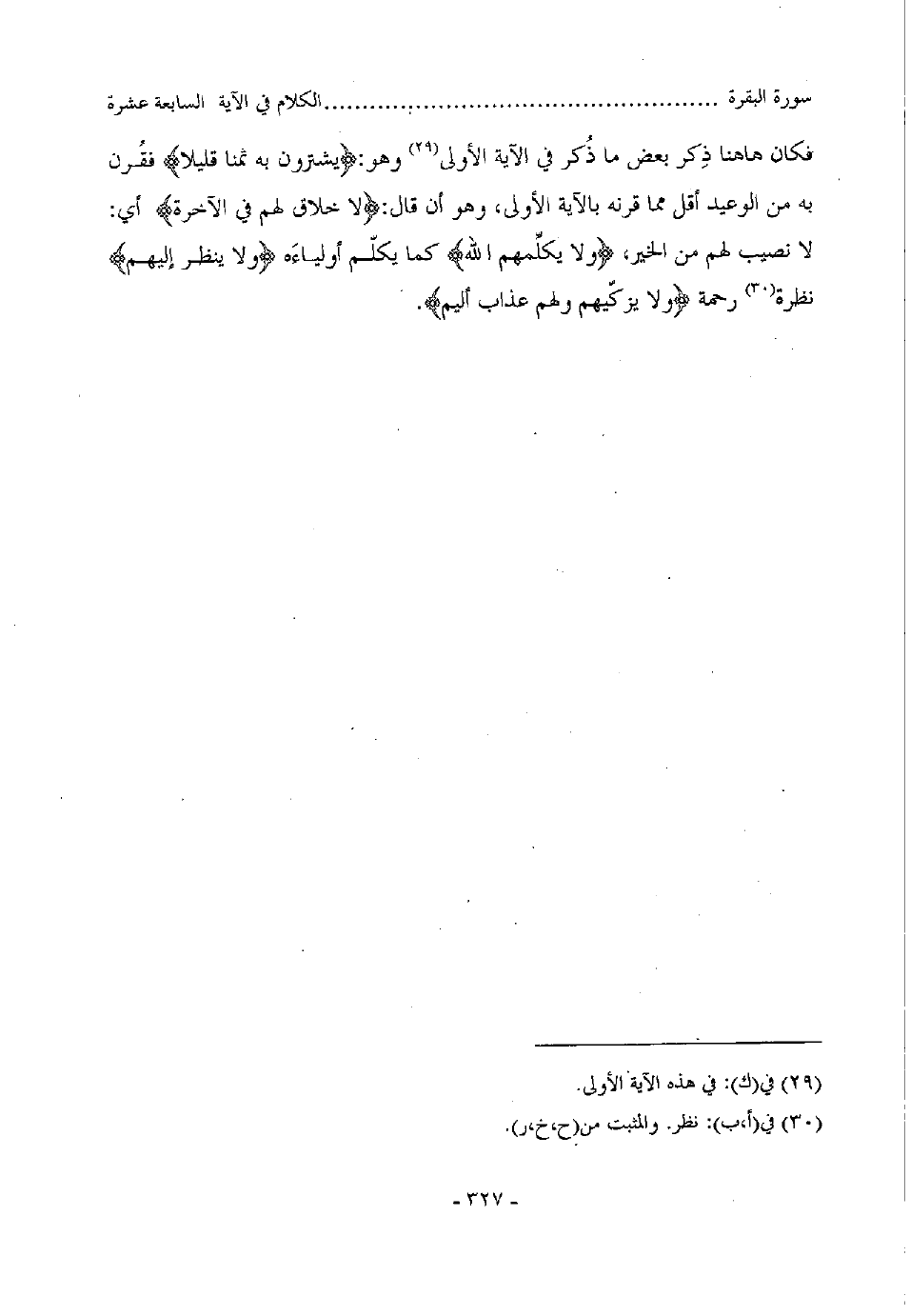 فكان هاهنا ذكر بعض ما ذكر في الآية الأولى وهو: (يشترون به ثمنا قليلا) فقرن به من الوعيد أقل مما قرنه بالآية الأولى،