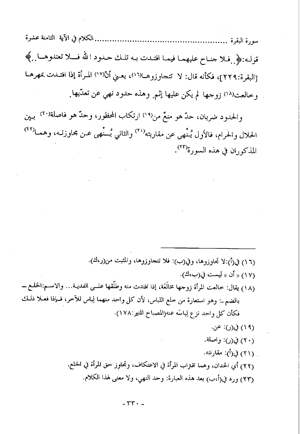 قوله: (.. فلا جناح عليهما فيما افتدت به تلك حدود الله فلا تعتدوها..) " البقرة: 229"، فكأنه قال: لا تتجاوزوها، يعني المرأة إذا افتدت بمهرها وخالفت زوجها لم يكن عليها إثم. وهذه حدود نهي عن تعديها.