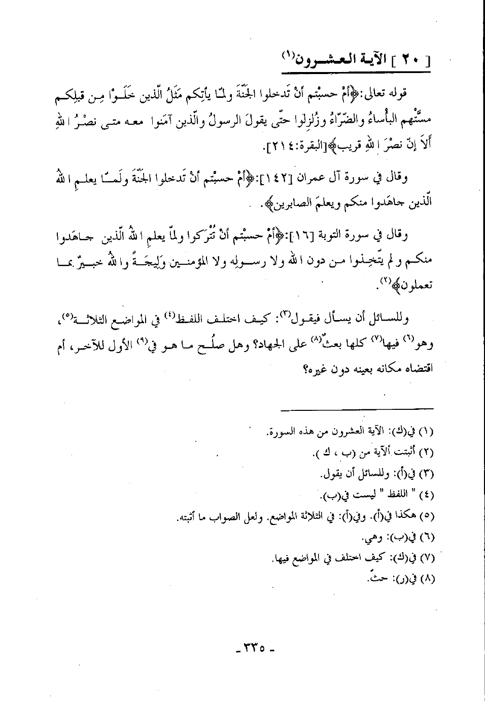وقال في سورة آل عمران"142") أم حسبتم أن تدخلوا الجنة ولما يعلم الله الذين جاهدوا منكم ويعلم الصابرين) .