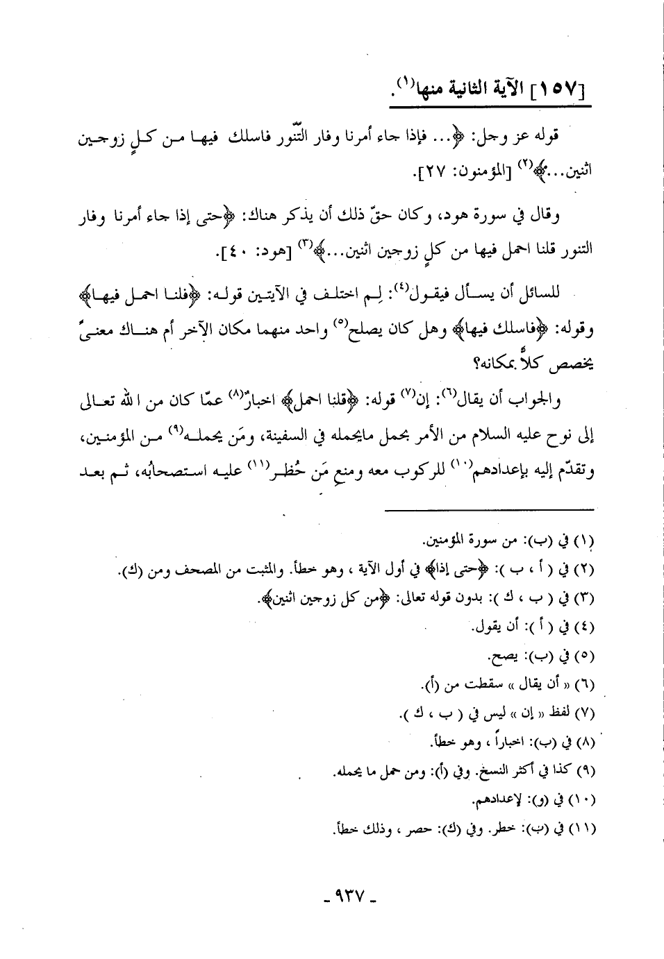 وقال في سورة هود، وكان حقّ ذلك أن يذكر هناك: (حَتَّى إِذَا جَاءَ أَمْرُنَا وَفَارَ التَّنُّورُ قُلْنَا احْمِلْ فِيهَا مِنْ كُلٍّ زَوْجَيْنِ اثْنَيْنِ ... ) .