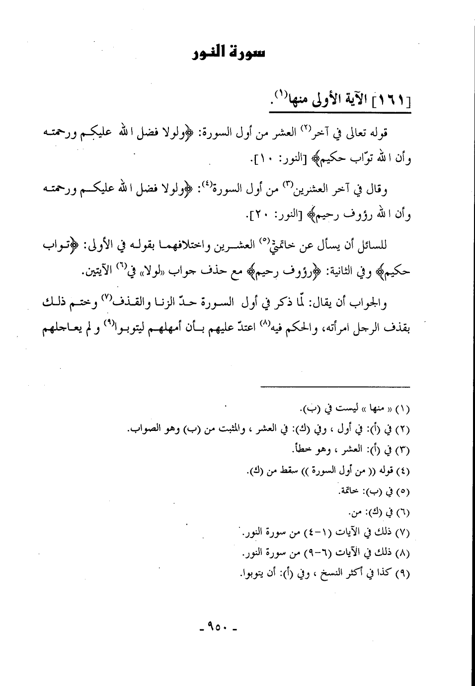 قوله تعالى في أخر العشر من أول السورة: (وَلَوْلَا فَضْلُ اللَّهِ عَلَيْكُمْ وَرَحْمَتُهُ وَأَنَّ اللَّهَ تَوَّابٌ حَكِيمٌ (10) .