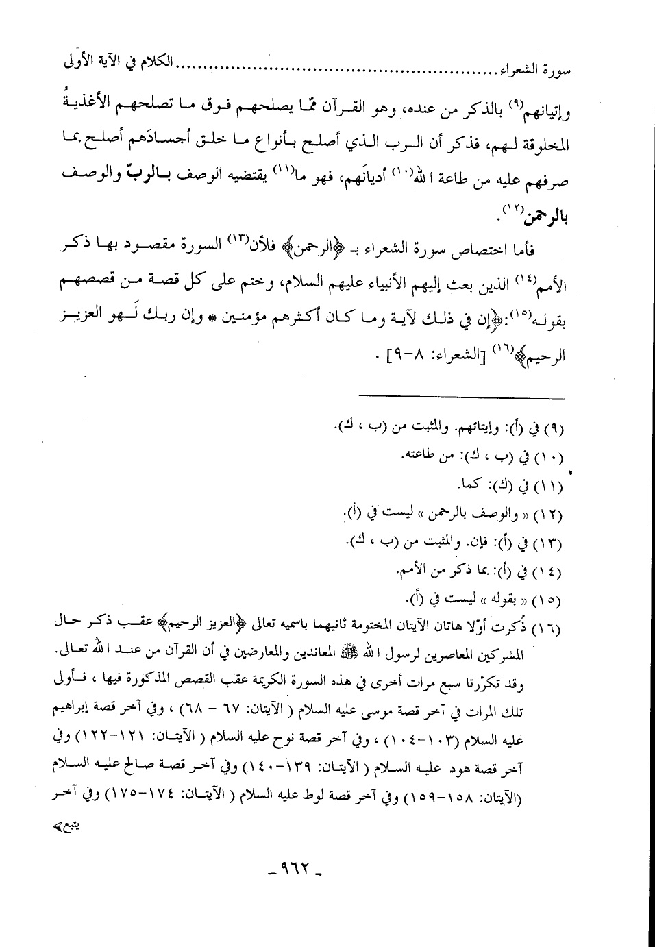 فأما اختصاص سورة الشعراء بـ (الرحمن) فلأن السورة مقصود بها ذكر الأمم الذين بعث إليهم الأنبياء عليهم السلام، وختم على كل قصة من قصصهم بقوله: (إِنَّ فِي ذَلِكَ لَآيَةً وَمَا كَانَ أَكْثَرُهُمْ مُؤْمِنِينَ (8) .