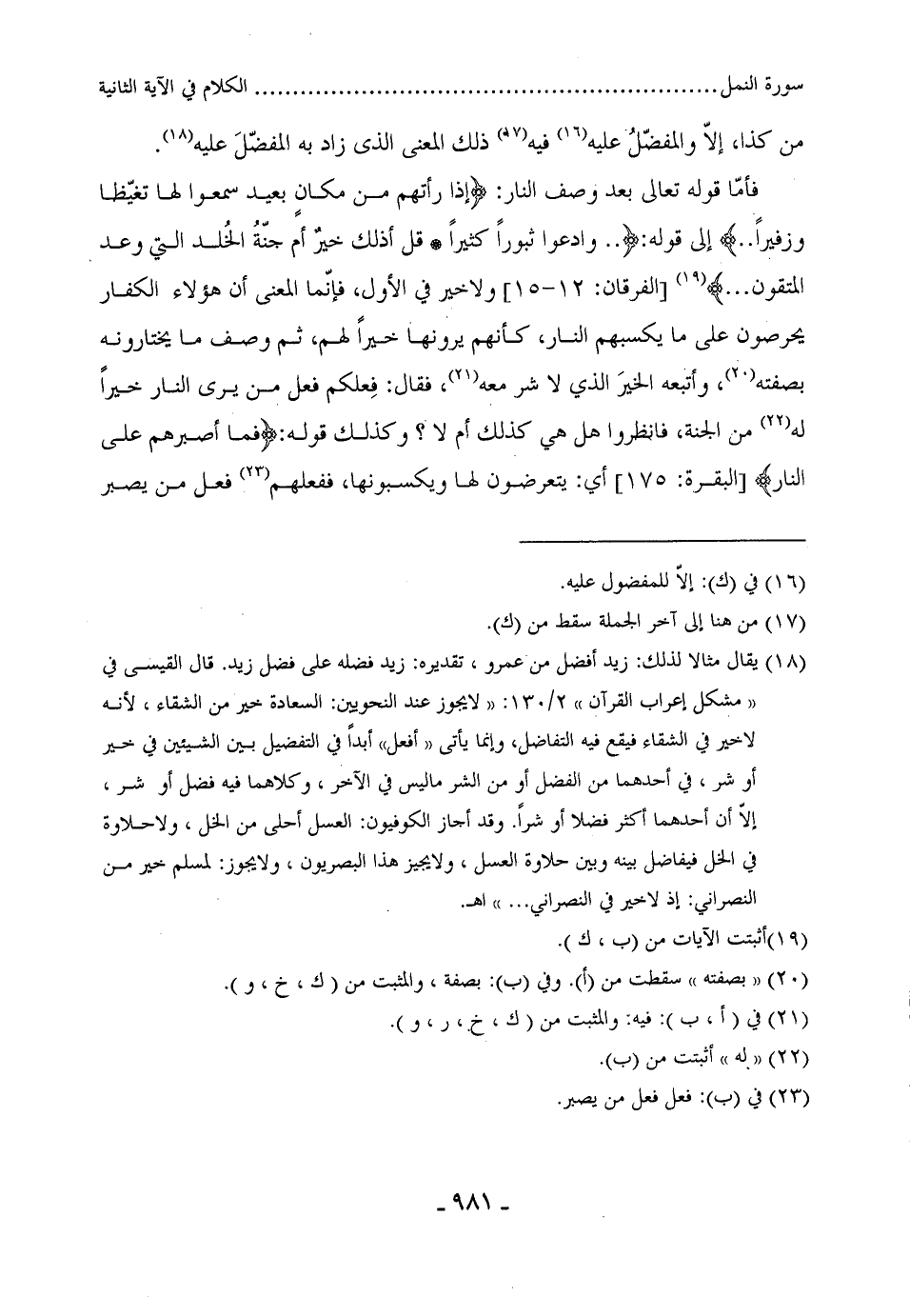 فأمّا قوله تعالى بعد وصف النار: (إِذَا رَأَتْهُمْ مِنْ مَكَانٍ بَعِيدٍ سَمِعُوا لَهَا تَغَيُّظًا وَزَفِيرًا (12) ... إلى قوله: (.. وَادْعُوا ثُبُورًا كَثِيرًا (14) قُلْ أَذَلِكَ خَيْرٌ أَمْ جَنَّةُ الْخُلْدِ الَّتِي وُعِدَ الْمُتَّقُونَ ... ) ،