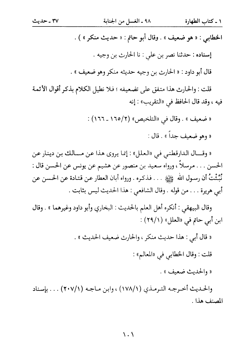 الخطابي: " هو ضعيف ". وقال أبو حاتم: " حديث منكر ") .