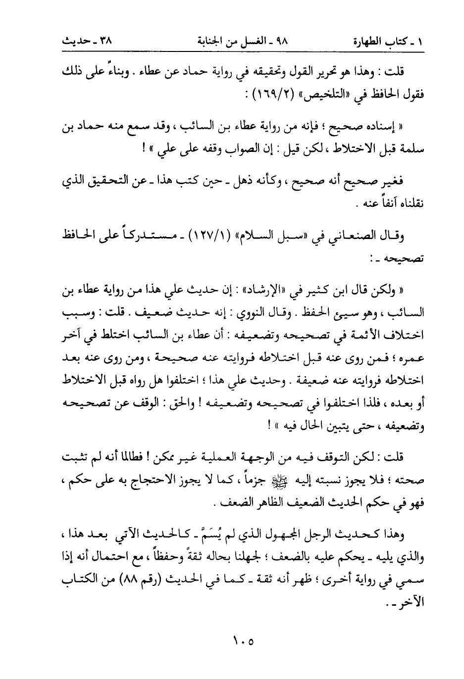 " ولكن قال ابن كثير في " الإرشاد ": إن حديث علي هذا من رواية عطاء بن