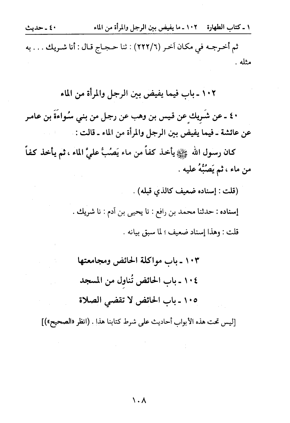 إسناده: حدثنا محمد بن رافع: نا يحيى بن ادم: نا شريك.