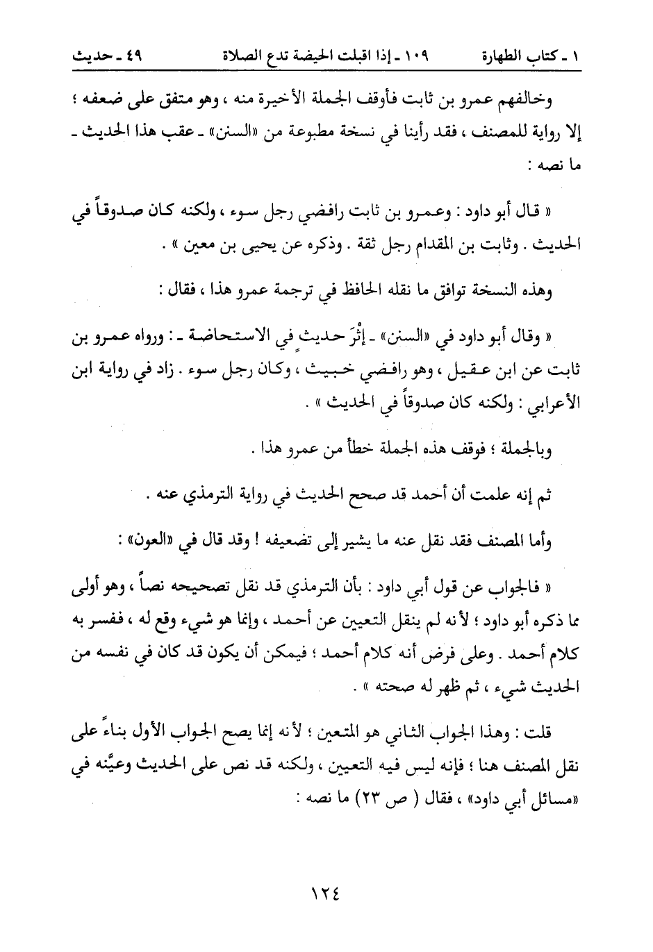 " وقال أبو داود في " السنن " - إثْر حديثٍ في الاستحاضة-: ورواه عمرو بن