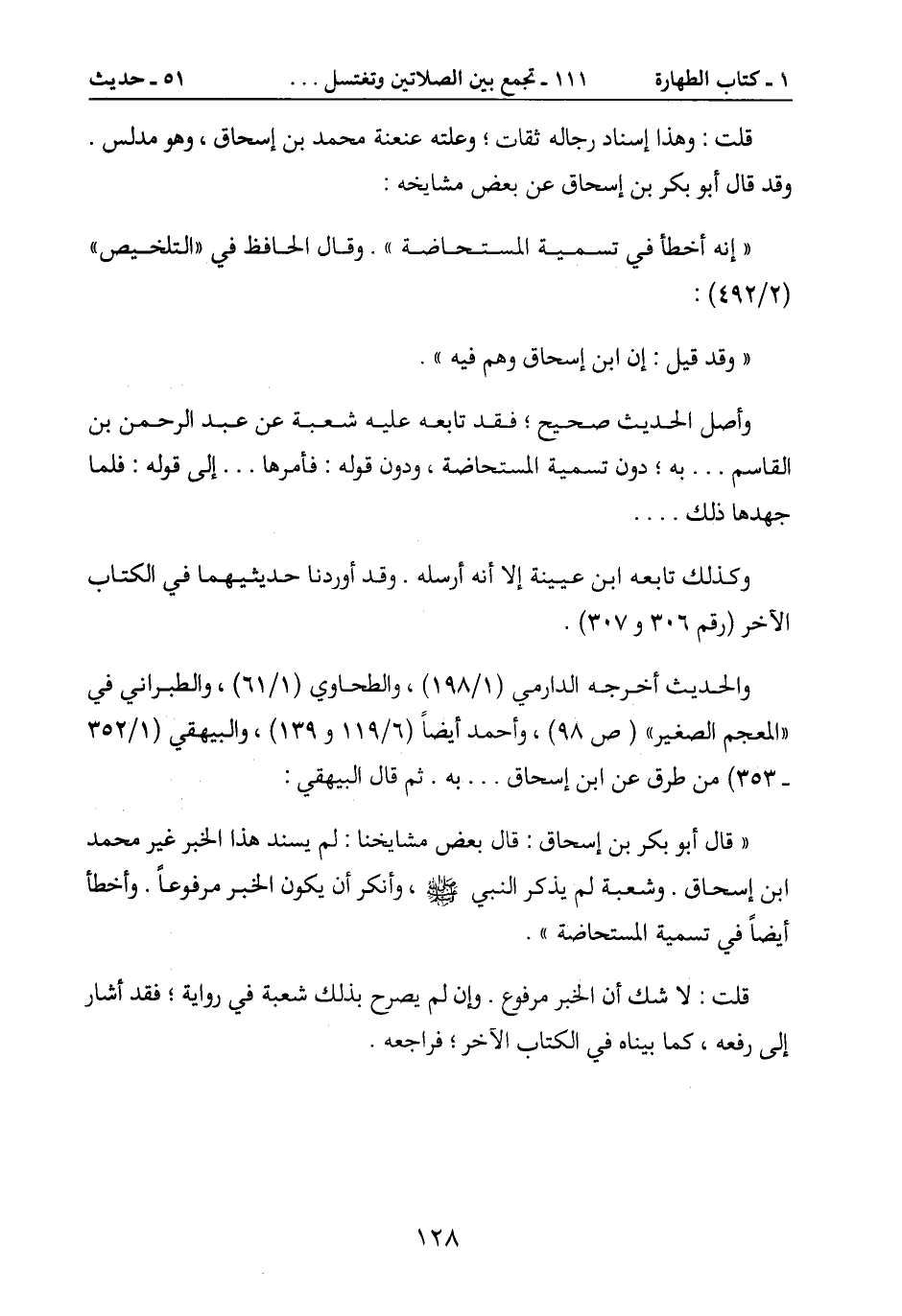 " إنه أخطأً في تسمية المستحاضة ". وقال الحافظ في " التلخيص "