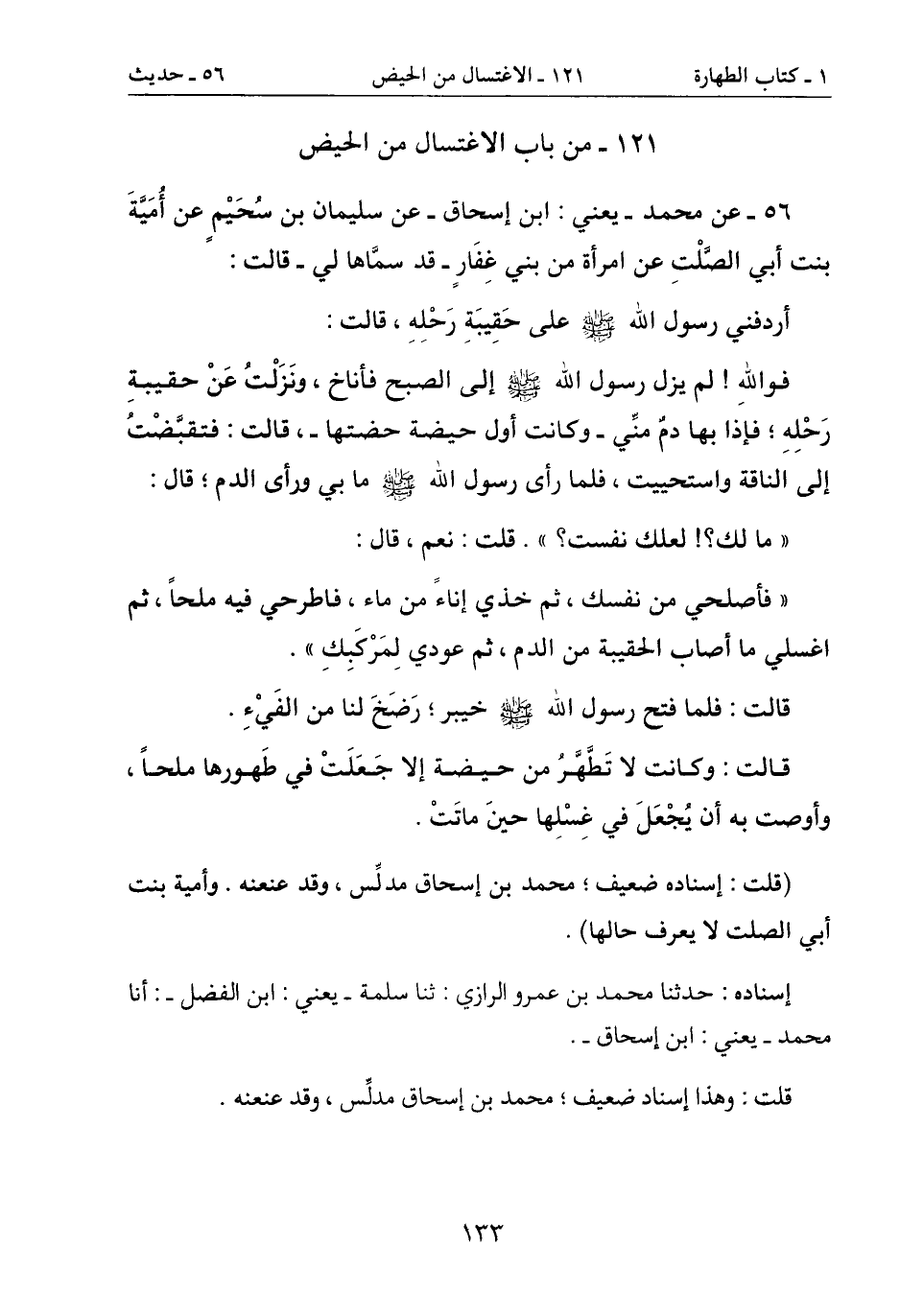 (قلت: إسناده ضعيف؛ محمد بن إسحاق مدلِّس، وقد عنعنه. وأمية بنت
