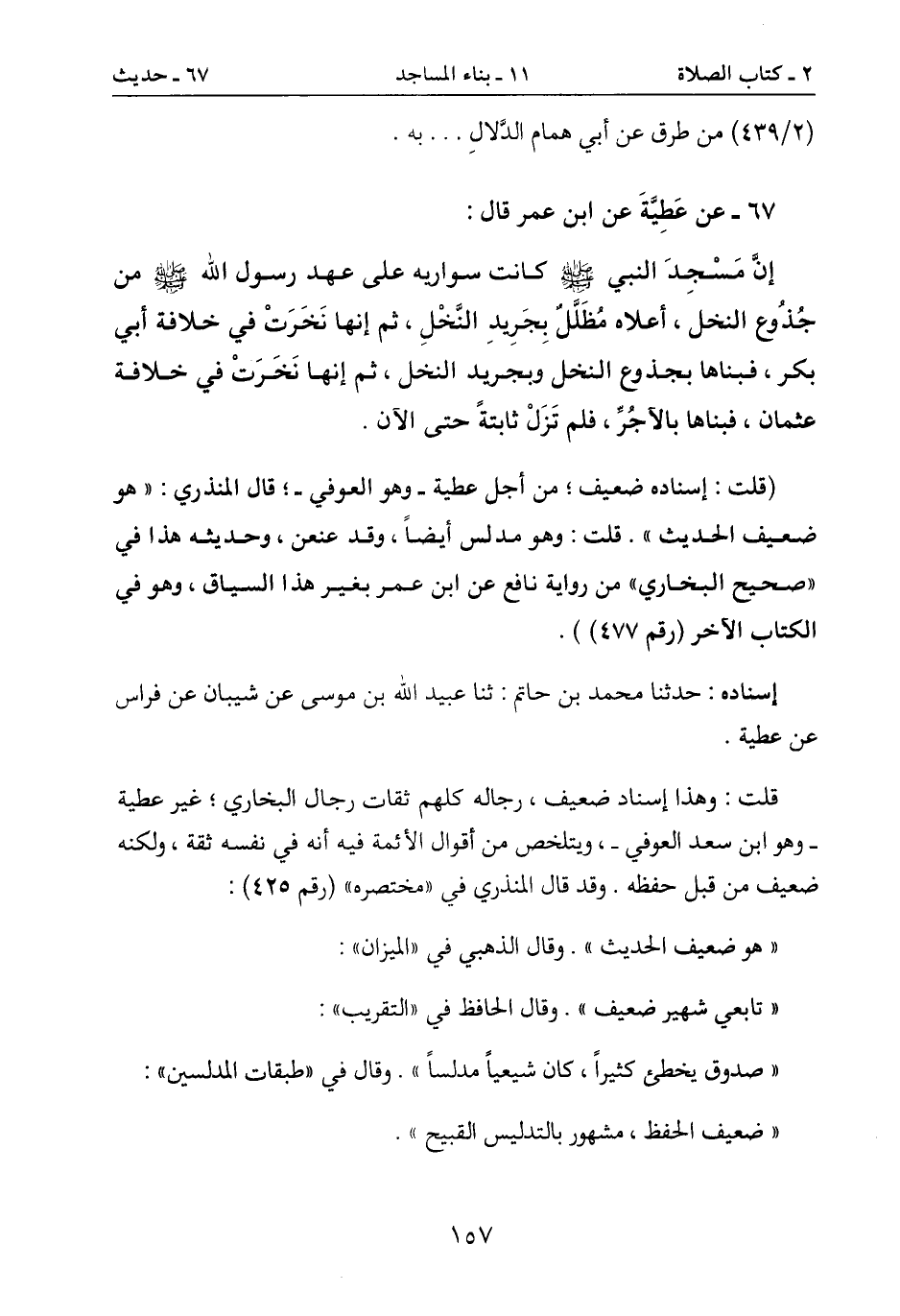 إنّ مسْجِد النبي صَلَّى اللَّهُ عَلَيْهِ وَسَلَّمَ كانت سواريه على عهد رسول الله صَلَّى اللَّهُ عَلَيْهِ وَسَلَّمَ من