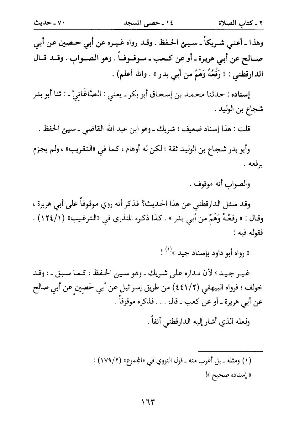 وقال: " رفعة وهمٌ من أبي بدر ". كذا ذكره المنذري في " الترغيب " (1/124) .