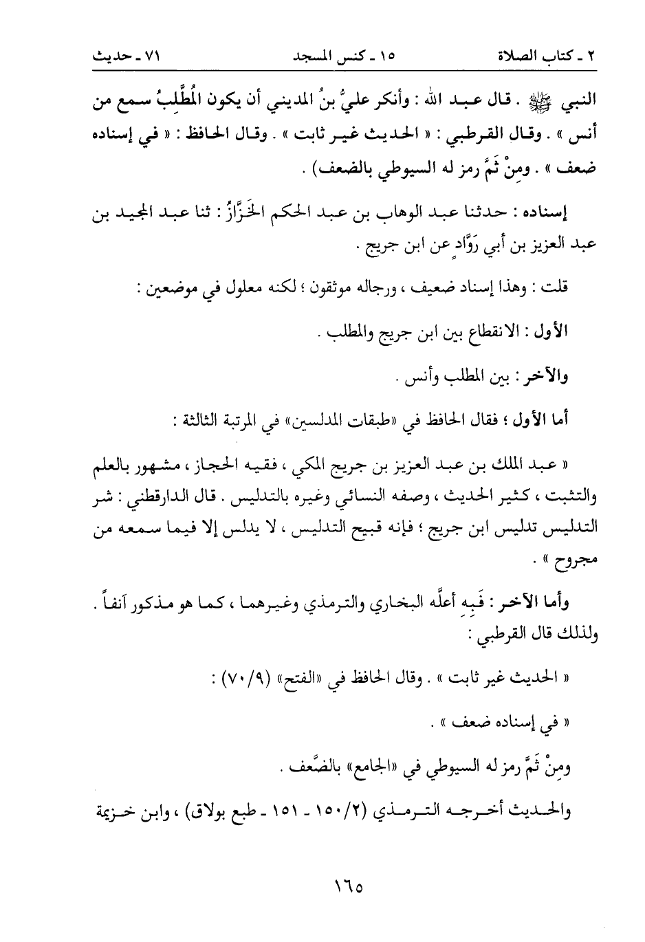 النبي صَلَّى اللَّهُ عَلَيْهِ وَسَلَّمَ. قال عبد الله: وأنكر علي بنُ المديني أن يكون المُطلِبُ سمع من